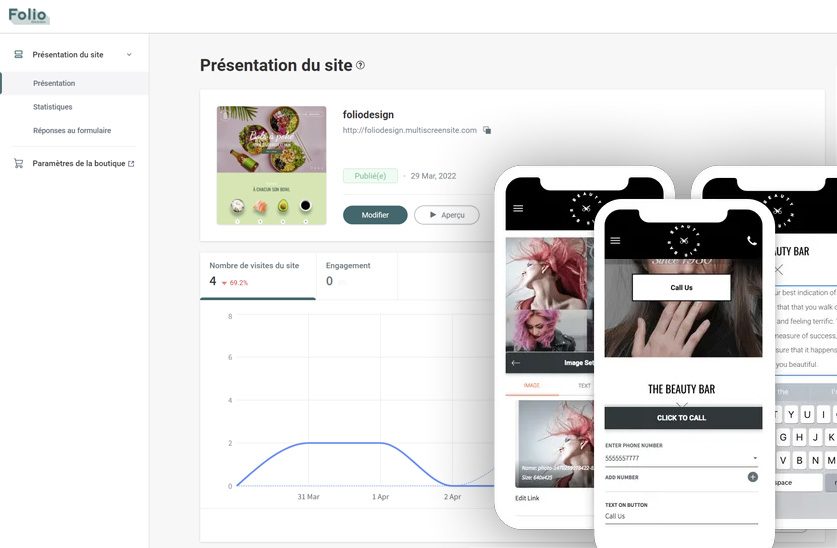 Mettez votre site à jour depuis votre ordinateur ou mobile. Besoin de modifier votre texte ou d'importer une photo ? Faites-le en un rien de temps, avec MyFolio notre éditeur en ligne.